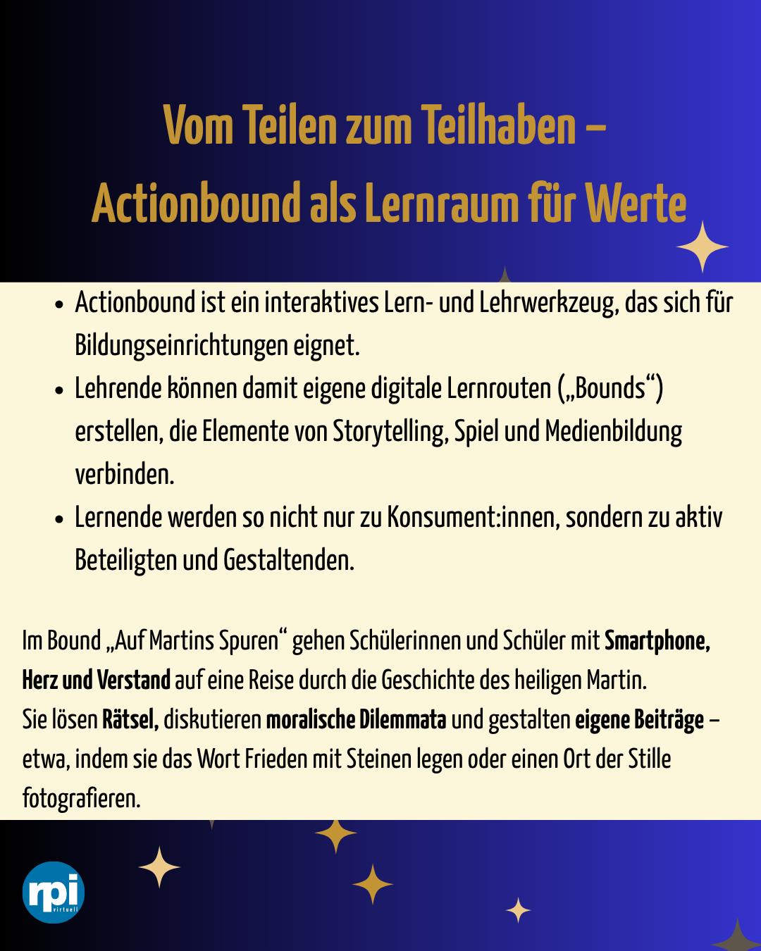 Ein Beispiel dafür ist das Projekt „Auf Martins Spuren – ein Actionbound zum Thema St. Martin“, das klassische Wertebildung mit digitalen Medien verbindet.